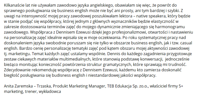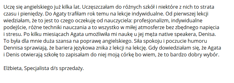 - chcesz płynnie i swobodnie mówić po angielsku lub rozwijać się w biznesie